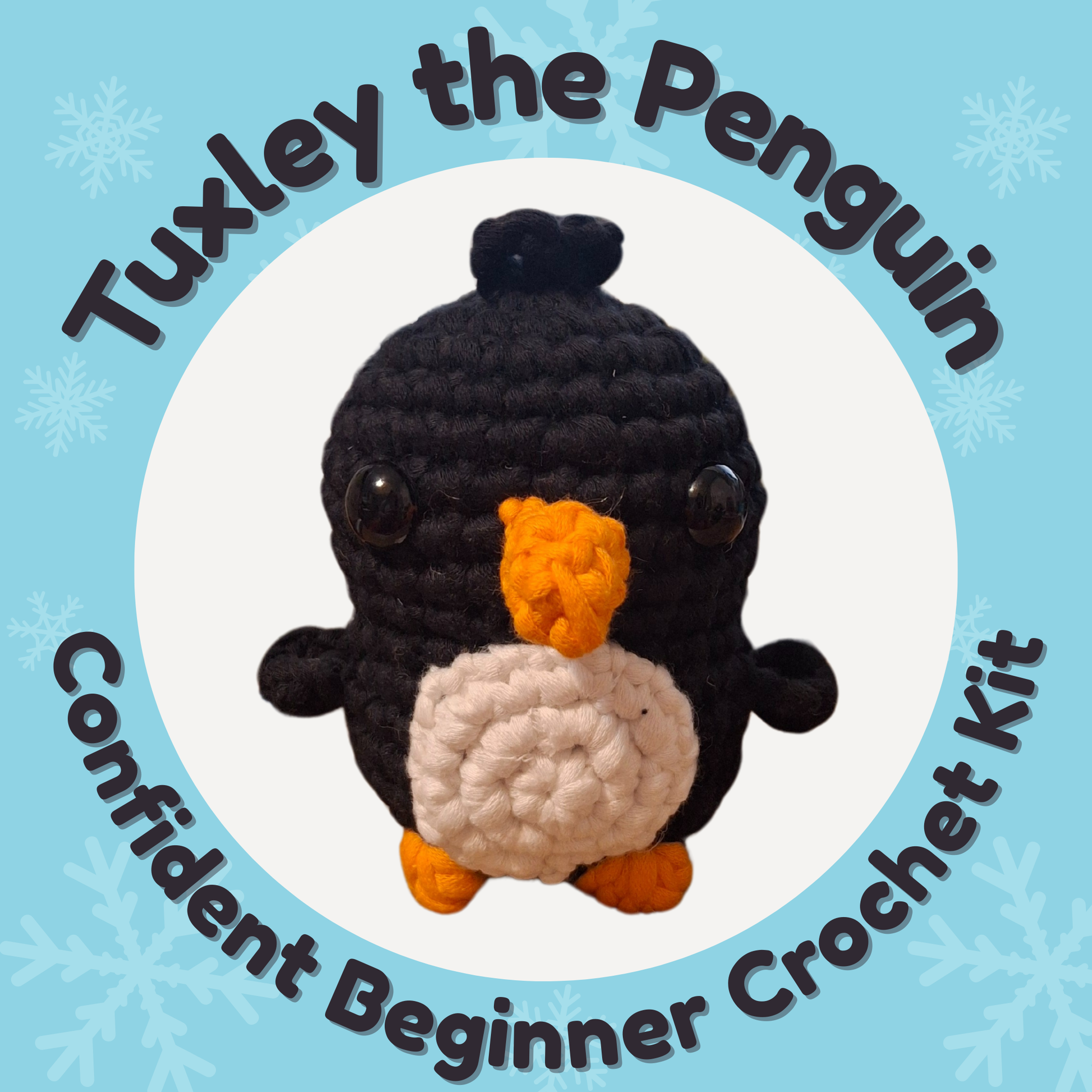 Crochet a little joy with Tuxley. Proof that cold weather can still bring the warmest smiles.